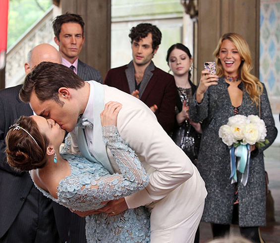 Облечена во небесно син фустан од колекцијата висока мода на незаменливиот Ели Сааб, Лејтон Мистер (Блер Волдорф) блеска од среќа во прегратката на Ед Вествик (Чак Бас). Според фотографиите, на церемонијата снимена во Централ Парк присуствуваат само најблиските на младоженците.