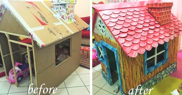 Џех Капарас ја создал куќарката за малата Ели од картони и дрво, а бил инспириран од анимираниот филм „Up“. 3-годишното девојче од Филипини дури и му помагало на својот дедо во обојувањето на куќата.