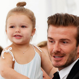 Додека 39-годишната дизајнерка ја презентираше колекцијата пролет/лето 2014, Дејвид и малата Харпер Севен привлекуваа погледи со своето присуство. Слаткото девојче измами насмевки и од строгата уредничка на „Вог“, Ана Винтур.
