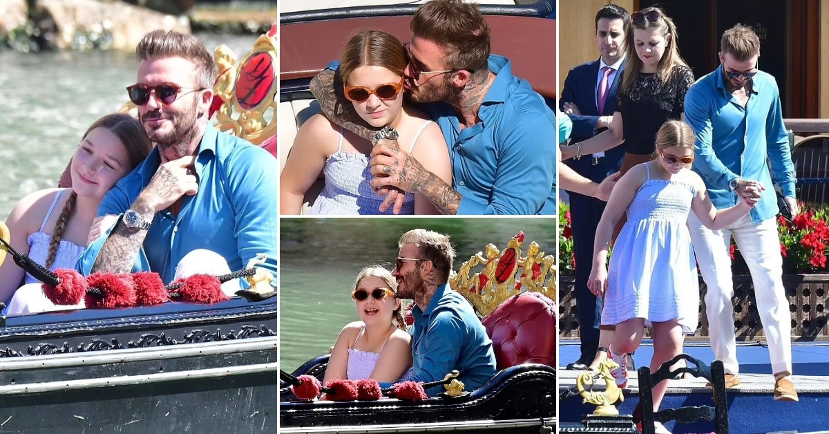 ФОТО: Дејвид Бекам ја прегрнува и бакнува ќерката Харпер додека уживаат на гондола во Венеција