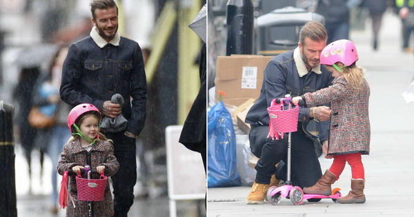 Папараците го уловија 39-годишниот поранешен фудбалер со 3-годишната ќерка во Лондон. На фотографиите малата Харпер се вози на детски скутер и не дозволува дождливото време да ја спречи во намерите да се забавува.