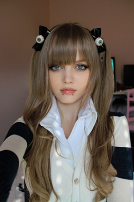 Таа секогаш се облекува во слатка облека, си прави необични детски фризури и носи специфична шминка која ги истакнува нејзините очи. Во слободното време е блогерка, но создава и туторијали на YouTube.