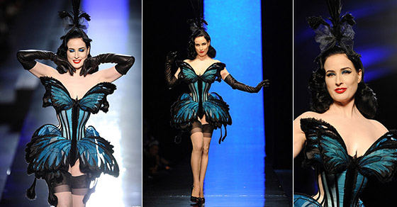 Дита Вон Тис не ги пропушта ревиите на Жан Пол Готје – или ги набљудува од првиот ред или е на самата модна писта. На денешната ревија во Париз, 41-годишната „кралица на бурлеската“ ги привлече погледите со незаборавно дефилирање.