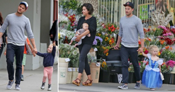 На фотографиите, згодниот Џејми и 33-годишната актерка Амелија Варнер шетаат со двегодишната Долси и малото бебенце кое се роди пред два месеци.