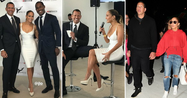 Музичката и филмска ѕвезда беше уловена на два настани во друштво на саканиот Алекс Родригез.