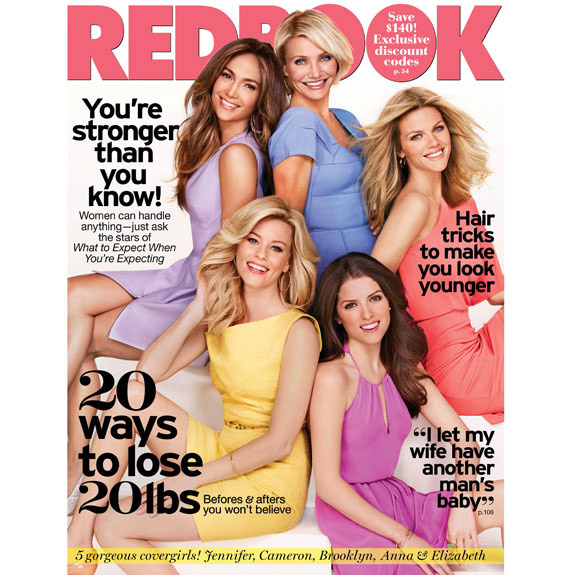 Џенифер Лопез, Камерон Дијаз, Бруклин Декер, Елизабет Бенкс и Ана Кендрик со своите широки блескави насмевки ја красат насловната страна на списанието „Redbook“. Привлечните ѕвезди од филмот „What To Expect When You're Expecting“ позираа заедно за јунското издание на списанието, а во интервју споделија некои од своите ставови и искуства поврзани со мајчинството.