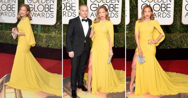 За свеченоста, на која беа наградени најдобрите од филмската индустрија, 46-годишната пејачка и актерка носеше жолт фустан со наметка од ателјето на Џамбатиста Вали. Својот изглед таа го надополни со обувки од Џими Чу, чантичка од Џудит Либер и накит од Хари Винстон. Блескавиот накит бил направен од дијаманти од вкупно 200 карати.