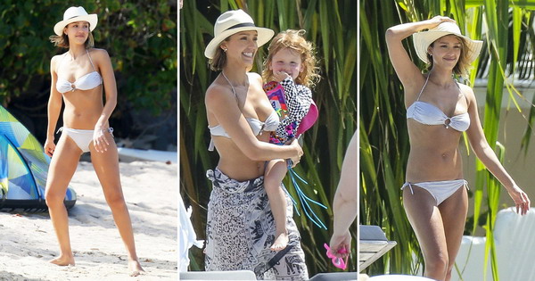 Џесика Алба ужива на семеен одмор на Кариби. 33-годишната актерка беше фотографирана на тропска плажа додека се забавуваше со ќерките Хонор и Хевен и сопругот Кеш Ворен.