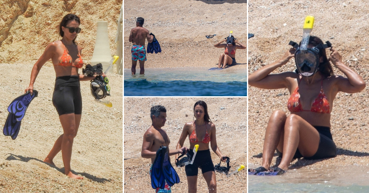 40-годишната актерка ја покажа одличната фигура облечена во горен дел од бикини и бициклистички додека се подготвуваше да нурка со 42-годишниот продуцент.