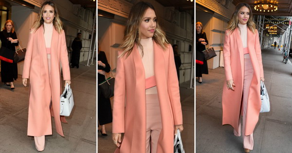Долгото палто Џесика во вметна во уште една шик комбинација.