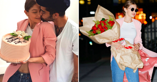 ФОТО: Џиџи Хадид со бакнеж од Зејн Малик и голем букет рози го прослави својот 22-ри роденден