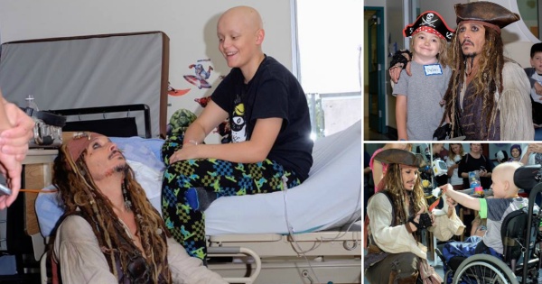 Џони Деп го искористи слободното време за да измами насмевки на лицата на болни дечиња. 54-годишниот актер ги изненади малите пациенти во детска болница во Ванкувер, каде се појави облечен како капетан Џек Спароу.