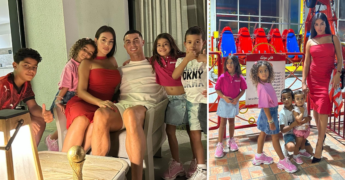 На фотографиите, успешниот фудбалер и неговата сакана позираат со нивните пет деца.