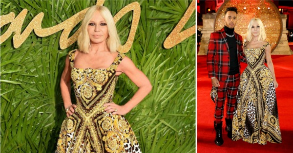 На црвениот тепих, Донатела пристигна со возачот во „Формула 1“, Луис Хамилтон.