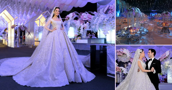 Бројни гости го прославија стапувањето во брак на младиот пар во огромна сала во Бејрут, декорирана со стотици илјади цвеќиња, бисери, кристали и светла.