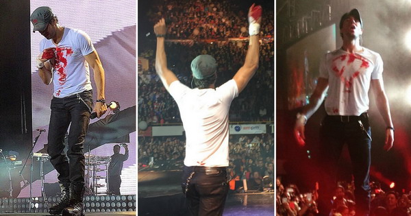 ФОТО: Енрике Иглесијас со крвава рака го продолжи својот концерт откако дрон му ги пресече прстите