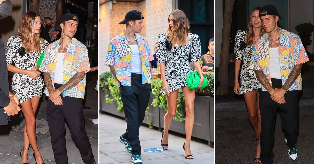 24-годишниот модел и 27-годишниот пејач беа фотографирани додека се упатуваа на вечера во ресторан во Беверли Хилс. Хејли изгледаше модерно во мини фустан од Алесандра Рич и зелена чанта од брендот New Bottega.