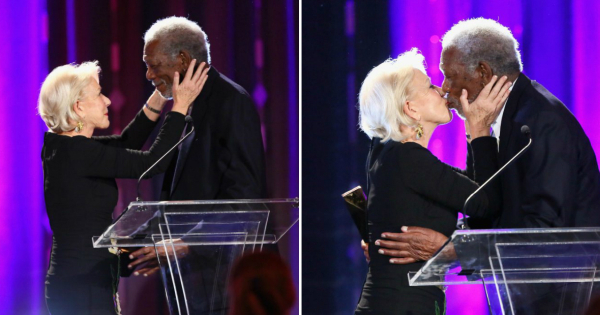 Хелен Мирен не можеше да ја сокрие својата среќа додека му ја врачуваше на Морган Фримен наградата за достигнувања во кариерата на 16-тото по ред доделување на Наградите за филмови за возрасни во Беверли Хилс.