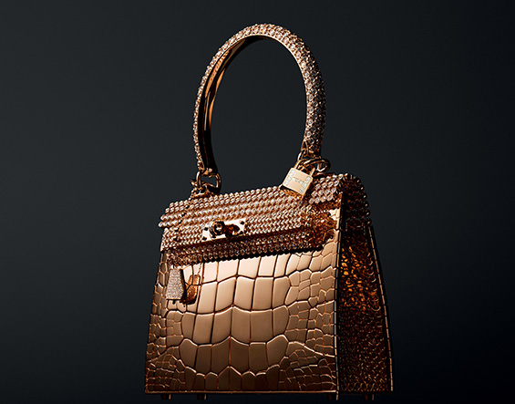 Hermès објави фотографија од една од чантите, кај која текстурата на златото наликува на крокодилска кожа, а чија рачка е накитена со 1.160 дијаманти и може да се користи како накит за на рака.