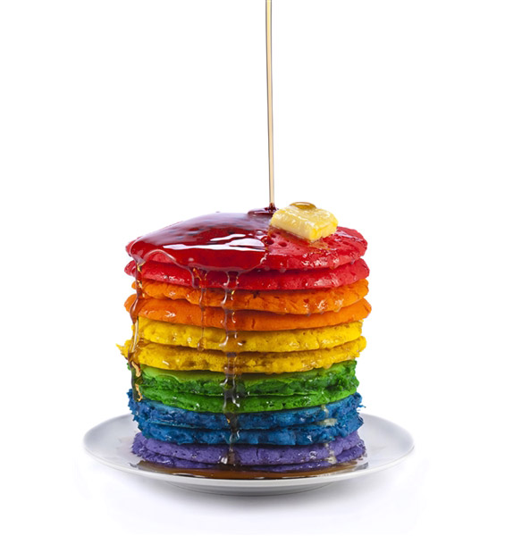 Нивната колекција „Food of the Rainbow“ вклучува палачинки, сладолед, хамбургер и шпагети обоени со прехранбена боја.