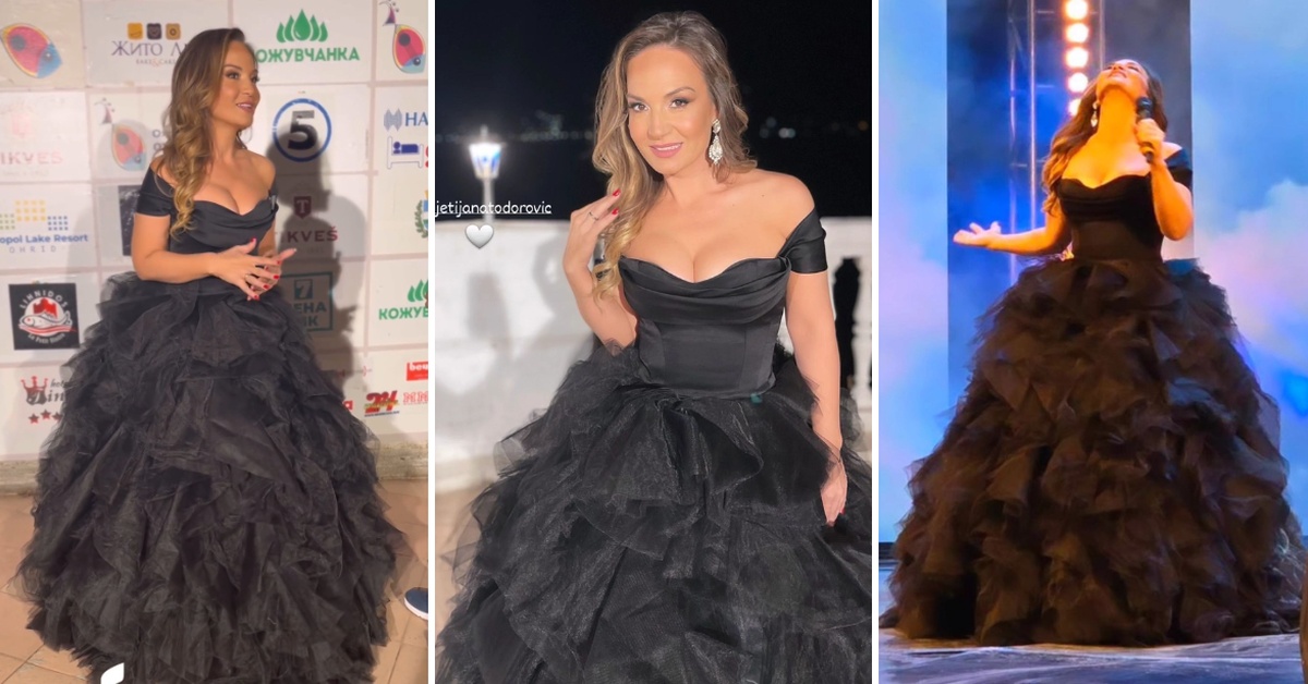 За оваа пригода, 40-годишната музичка ѕвезда избра црна долга тоалета од ателјето на Тијана Тодоровиќ.