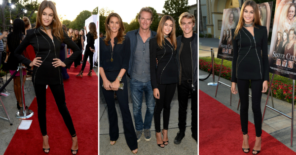 На настанот, младата актерка и модел доби поддршка од целото свое семејство. Супермоделот Синди Крафорд, нејзиниот сопруг Ренди Гербер и синот Пресли со широка насмевка позираа покрај Каја.