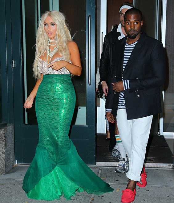 Ким Кардашијан и Кание Вест се појавија на забава во Њујорк облечени како сирена и морнар. Популарната ТВ ѕвезда го промени и изгледот на својата коса и стана русокоса со перика од над 2.000 долари.