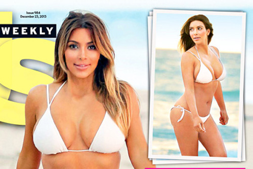 За списанието „Us Weekly“ Ким позираше на плажа во бели бикини.