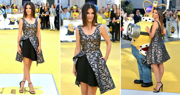 Сандра Булок измами многу комплименти додека чекореше на жолтиот тепих на премиерата на филмот „Minions“.