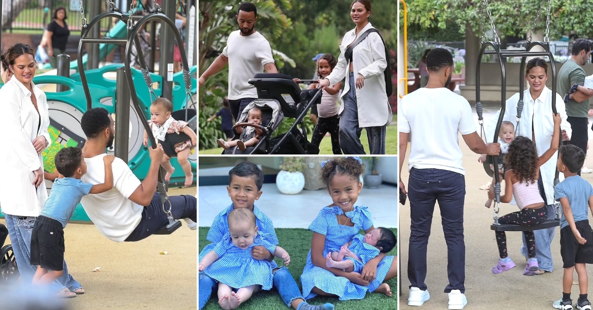 37-годишниот модел и 44-годишниот пејач се забавуваа со Луна, Мајлс и Ести, додека нивниот новороден син Рен не беше со нив. Криси ја роди Ести во јануари годинава, а минатиот месец таа го изненади светот соопштувајќи дека семејството им се прошири со уште едно дете родено од сурогат-мајка.