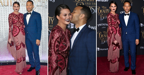 31-годишниот модел го привлекуваше вниманието на присутните и на фоторепортерите во бордо креација со реси од Raisa & Vanessa, која ја надополни со накит од EF Collection и чанта од Edie Parker. Тиген го придружуваше сопругот Џон Леџенд, кој за филмот го препеа хитот „Beauty and the Beast“ со Аријана Гранде.