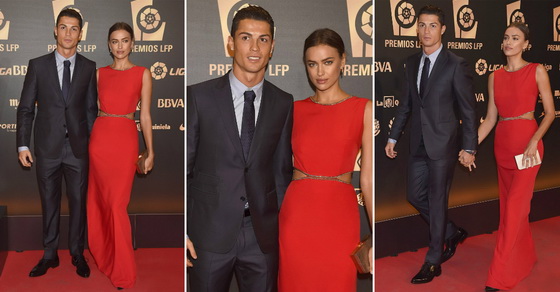 На црвениот тепих пред почетокот на свеченоста, Роналдо зачекори заедно со својата девојка Ирина Шајк. Славната манекенка изгледаше прекрасно во црвен долг фустан со минимални отсечоци на половината од Love Republic.