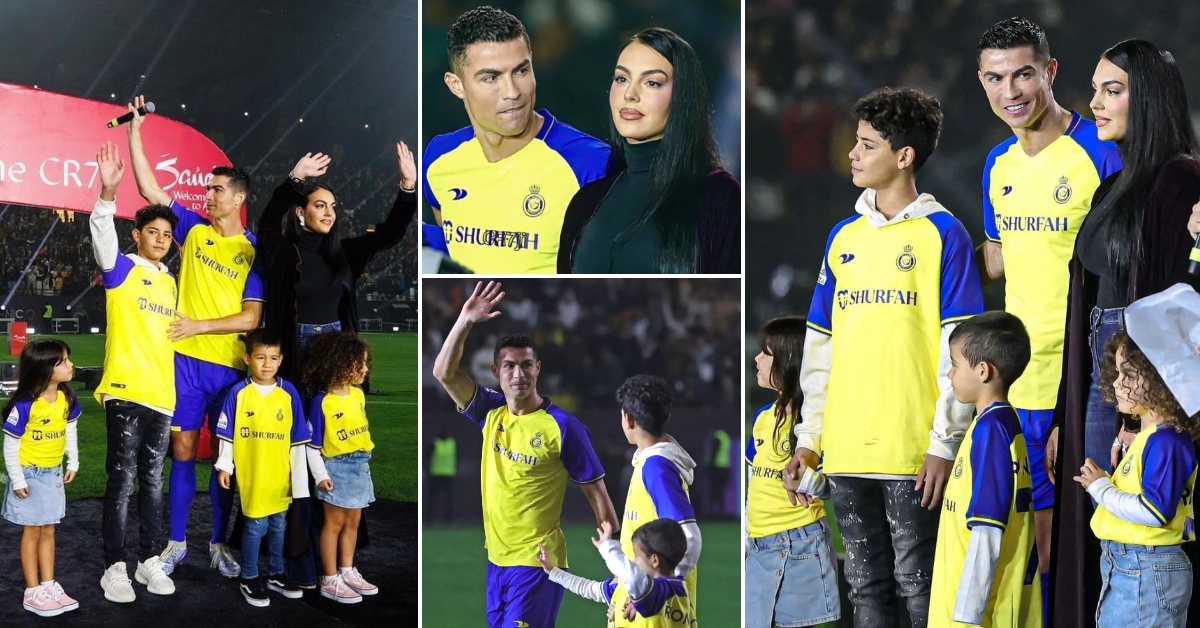 37-годишниот фудбалер им беше претставен на илјадниците фанови на стадионот „Mrsool Park“, каде ја доби поддршката од Џорџина Родригез и четири од нивните пет деца.
