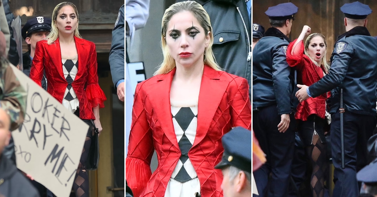 36-годишната актерка и пејачка беше фотографирана маскирана на сетот на „Joker: Folie à Deux“ во Њујорк. На фотографиите, таа носи црвено сако и црно кожено здолниште. Пред неа стојат протестанти кои држат знаци како „Џокер, ожени се за мене“ и „Ослободете го Џокерот“.