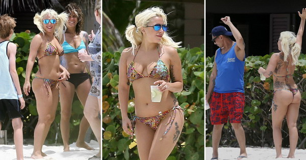 Лејди Гага го искористи престојот на Бахами и за работа и за релаксација. Музичката ѕвезда беше фотографирана додека се забавуваше на плажа со пријатели.