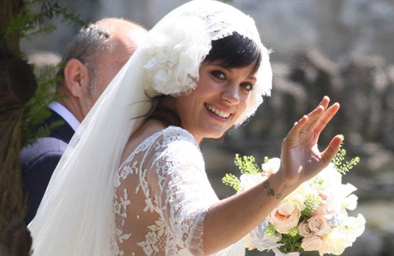 На свадбената церемонија, пред помалку од 100 гости, Лили со широка насмевка на лицето го покажа малото стомаче кое ѕиркаше под нејзината винтиџ венчаница со чипка, дизајнирана од креаторката Делфин Мениве.