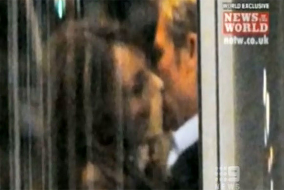 На краткото видео се гледа како 45-годишната актерка го бакнува Шејн, а весникот кој ја обелодени нивната афера тврди дека двајцата поминале две вечери во хотелската соба на Ворн во Лондон.