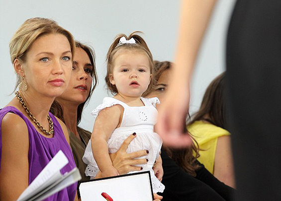 Викторија ја претстави колекцијата пролет/лето 2013 на линијата Victoria, Victoria Beckham. Додека манекенките ги презентираа поевтините креации на Викторија, малото девојче внимателно ги следеше од скутот на мајка си.