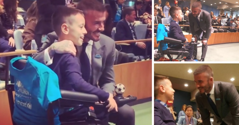 ФОТО: Малиот и инспиративен Јане од Скопје се запозна со Дејвид Бекам и одржа говор во ОН