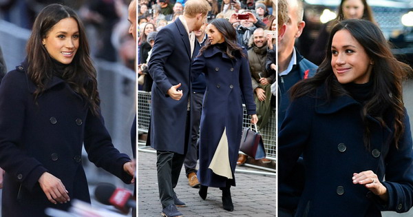 За првото појавување заедно како претставници на кралското семејство, тие беа стилски координирани со долги темносини палта. Палтото на Меган е дело на брендот Mackage.