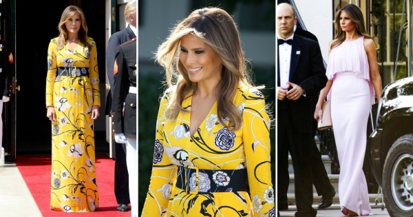 Стилот на Меланија Трамп не останува незабележан, каде и да се појави таа. На денешниот пречек на индискиот премиер Нарендра Моди, првата дама на САД шармираше покрај Доналд во жолт цветен фустан.