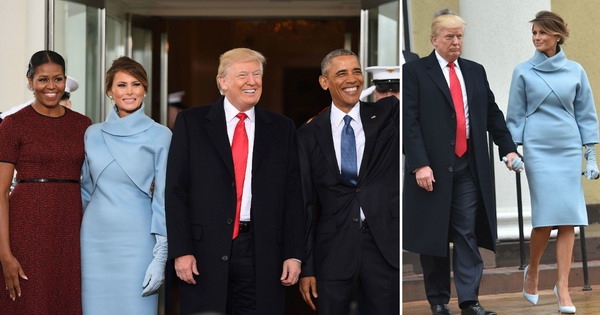 За таа пригода, Меланија избра префинет костум од Ралф Лорен во нежна бебешко сина нијанса и складни ракавици и салонки. Многумина коментираа дека стајлингот ги потсетил на незаборавната Џеки Кенеди.