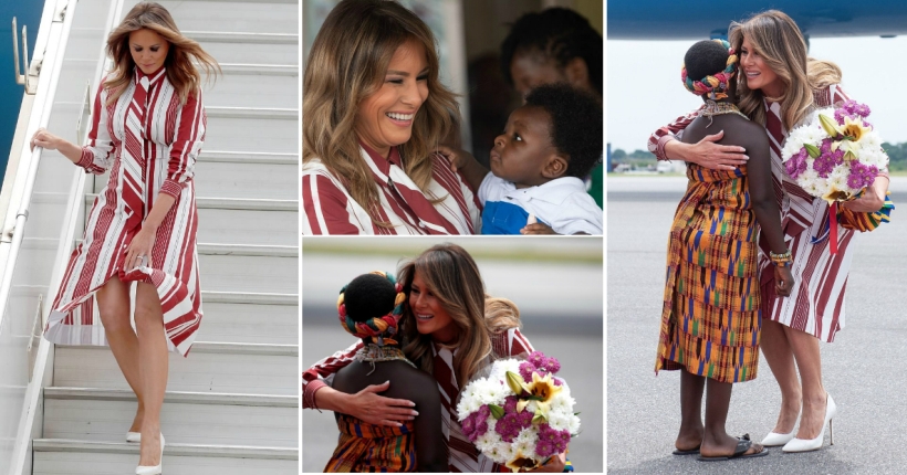 Beginning her first major solo international trip as first lady, Melania Trump arrives in Ghana and greets babies at the Greater Accra Regional Hospital in Accra. https://t.co/MeZgopD6m4 pic.twitter.com/4E69eLRJK9
