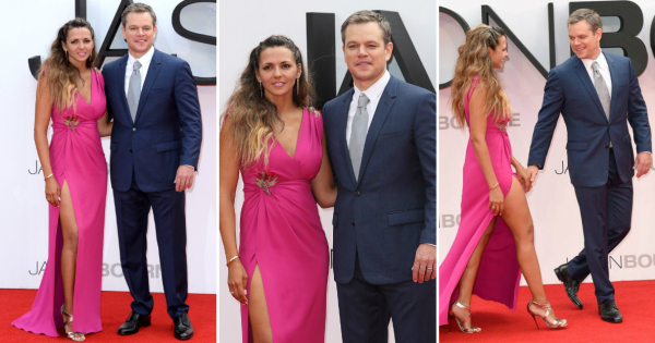 Главниот херој, Мет Дејмон, беше придружуван од својата сопруга, која привлече огромно внимание кај присутните фоторепортери. 40-годишната Лусијана Баросо шармираше облечена во долг магента фустан со висок шлиц и златни сандали од Jimmy Choo.