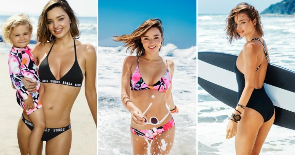 Миранда Кер е згодна сурферка во новата кампања на „Bonds“. 33-годишната манекенка го разголи своето тело во костими за капење и позираше со машки модели на плажа во Малибу.
