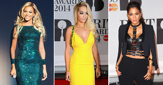 Блескавите фустани доминираа на црвениот тепих и на сцената. Кети Пери, Бијонсе, Лили Ален, Лорд и Роузи Хантингтон-Вајтли со светкави креации ги привлекоа погледите на своите фанови.