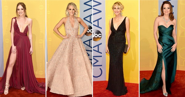 Кери Андервуд, која по деветти пат е водителка на манифестацијата, се пресоблече единаесет пати во текот на вечерта. На црвениот тепих, таа блесна во волуменозен фустан од Мајкл Синко.