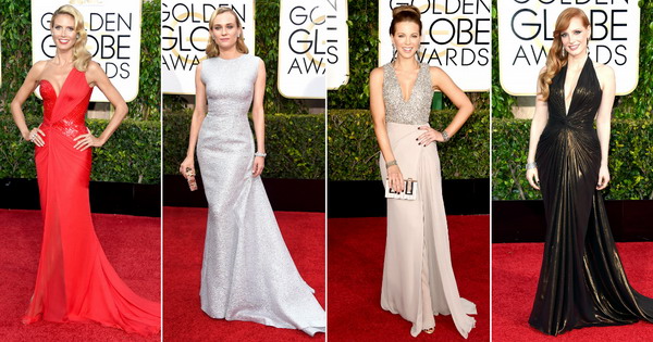 Сексапилните силуети на Версаче се покажаа како атрактивни за Хајди Клум, Синди Крафорд, Ејми Адамс, Џејн Фонда, Кејт Хадсон и Џесика Частеин. Анистон, која беше номинирана за Златен глобус, се појави во црна креација на Сен Лоран, додека модната куќа Кристијан Диор застана зад изгледот на Амал Клуни и Фелисити Џонс.