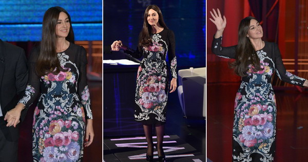 Белучи гостуваше во популарното италијанско шоу „Che tempo che fa“. Пред публиката во Милано, таа се појави во елегантен фустан со цветен принт од нејзините пријатели Долче и Габана и црни чевли од Кристијан Лобутин.