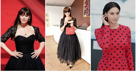 Само неколку часа претходно, Моника позираше на промотивен настан за новинарите во црвена креација со точкест принт, исто така од креаторското дуо Доменико Долче и Стефано Габана.